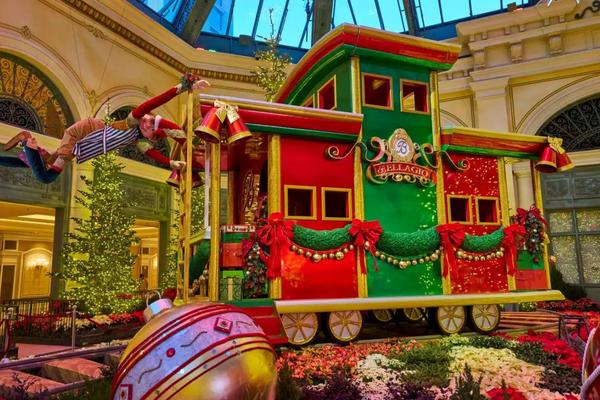 All Aboard for Holiday Bells and Whistles at The Bellagio Express; Explore a world of holiday wonder and cheer. Elvie the Elf will guide you on this Christopher Radko-inspired toy train through a bright winter wonderland. The holiday gardens installation has a playful touch and festive spirit. Each holiday scene highlights the joy, nostalgia, and warmth that make Christmas special.