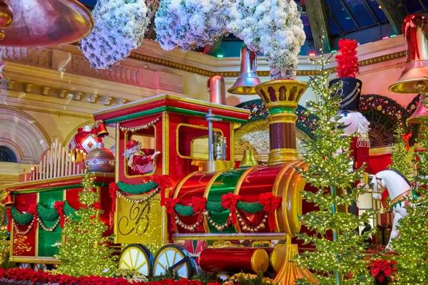 One of the most popular free things to do in Las Vegas is the Bellagio Resort & Casino’s Conservatory & Botanical Gardens. Located on the Las Vegas Strip, it is now showcasing its Holiday display, titled All Aboard for Holiday Bells and Whistles.