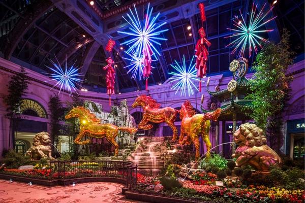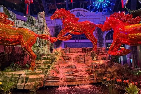 The celebration to kick off the Lunar New Year, the Year of the Horse, has started at the Bellagio Conservatory display. In the Chinese Zodiac, the horse is the seventh animal and stands for strength, energy, and freedom. The Horse is known for its lively spirit and drive, symbolizing movement and ambition in the 12-year cycle.