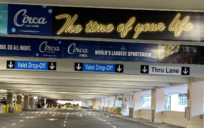 Long-term parking is available in the garage next to terminal 1 on Levels 1M-6. The height clearance is 8′ 2″. Each level is named after a famous resort. Use the Parking Reminder Cards near the elevators to remember your spot. The maximum parking time is 30 days. For longer stays, contact Airport Parking at (702) 261-5122.